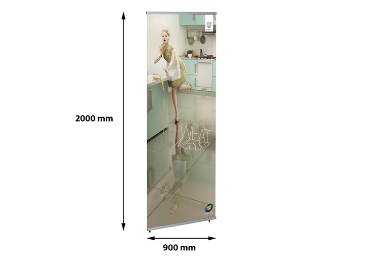 Economische uitvoering van de Quick Banner met een iets smaller klikprofiel en kunststof eindkap. Enkelzijdig uitgevoerd. Zilver geanodiseerd profiel.