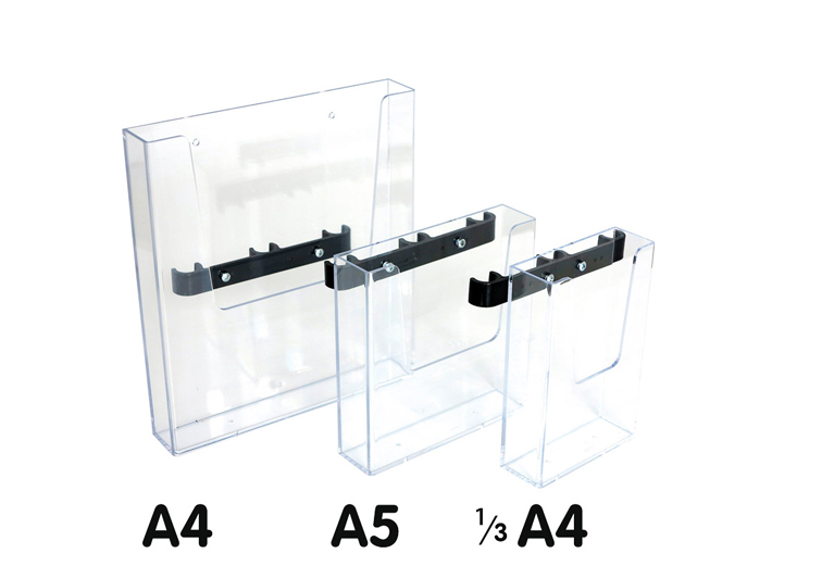 Brochurehouders zijn eenvoudig met de klem aan de Crown Truss modules te bevestigen.