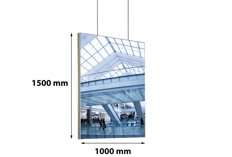 Dubbelzijdig doekframe samengesteld met het 45 x 15 mm Queen textiel-profiel. Zeer geschikt voor toepassing aan plafonds. Wordt geleverd zonder doek en zonder ophangsysteem (ophangsysteem UYUP460245 los te bestellen).