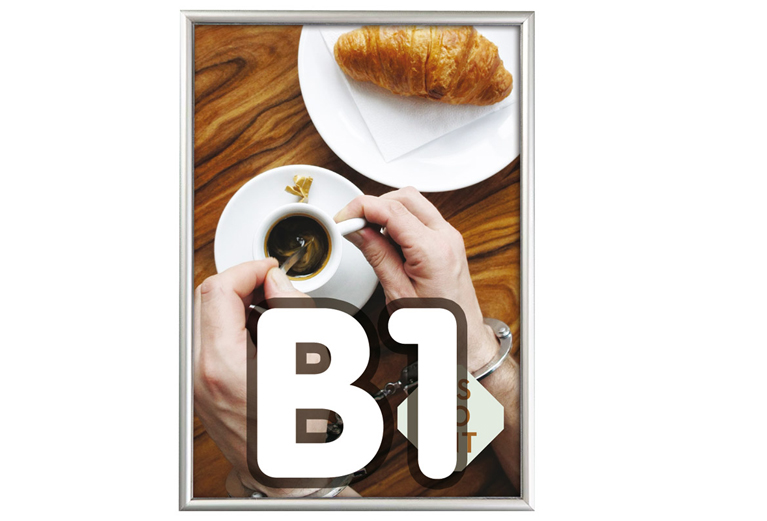Ideale kliklijst voor klein formaat posters vanwege het wat smallere profiel. Zilver geanodiseerd frame. Incl. anti-reflex PVC-folie.