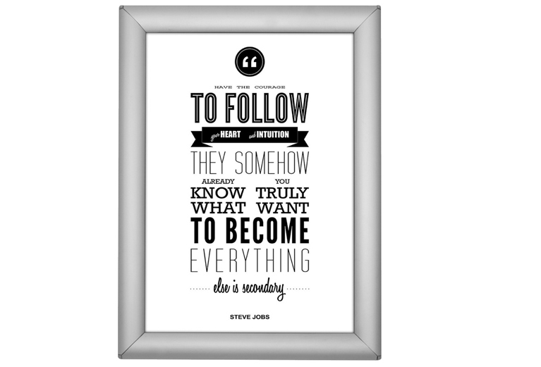Basis Eco kliklijst, 25 mm verstekhoek, alleen in A4 formaat. Alleen binnen te gebruiken. Inclusief anti-reflex folie. Geleverd in dozen van 10 stuks.
