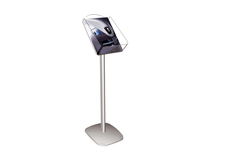 Brochurehouder met een totale hoogte van 1000 mm. Het brochurebakje is gemaakt van 3 mm dik polycarbonaat acrylaat, in zowel staande als liggende uitvoering.