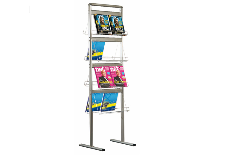 Voor het presenteren van minimaal 8 tot maximaal 32 x A4. De transparante brochuredisplays zijn gemaakt van 4 mm helder acrylaat. De brochurebakjes zijn zowel enkel- als dubbelzijdig uitgevoerd. Het frame is van zilver geanodiseerd aluminium ellipsprofiel 51 mm.