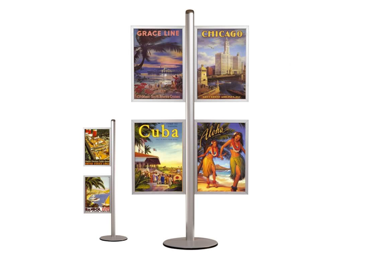 De kanalen aan weerszijden van het mastprofiel houden enkel- of dubbelzijdige slide-in frames afzonderlijk of meerdere tegelijkertijd. Elk frame wordt geleverd met de juiste bevestigingsmaterialen.