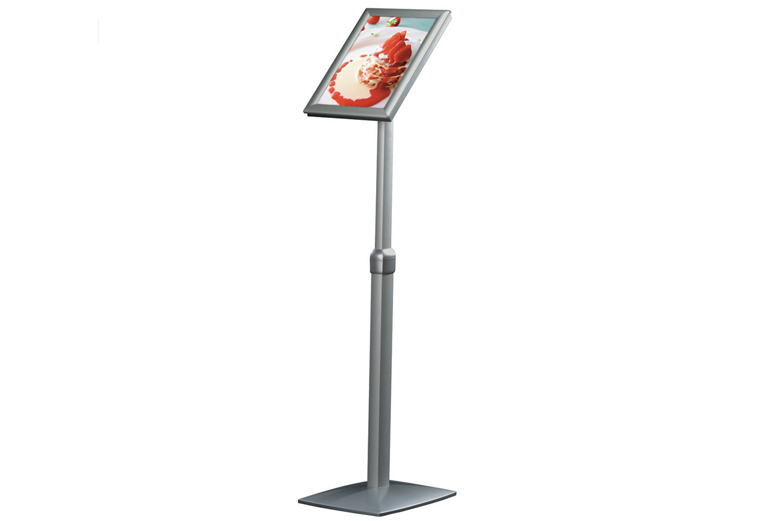 Origineel ontwerp, één product, multifunctioneel. Een nieuw ontworpen product om een nieuwe dimensie in menuborden te brengen. Het flexibele menubord vervult meerdere functies dankzij de instelbare hoogte en papierpositie-toepassingen via de verschillende hoeken aan de achterkant. De hoogte van het menubord, de liggende/portretpositionering en de opvallende kijkhoek zijn allemaal flexibel.
