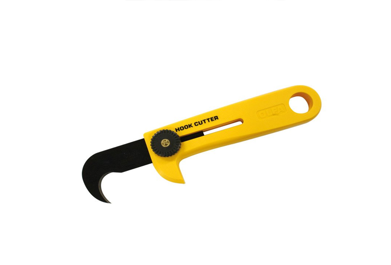 Extra groot haakmes. De totale lengte is uitgeschoven 17 cm en ingeschoven 12 cm. Snijdt gemakkelijk zonder het oppervlak of de inhoud te beschadigen. Het haakmes is stevig te vergrendelen dankzij de borgschroef. Aan de achterzijde is een groot ophangoog aanwezig.